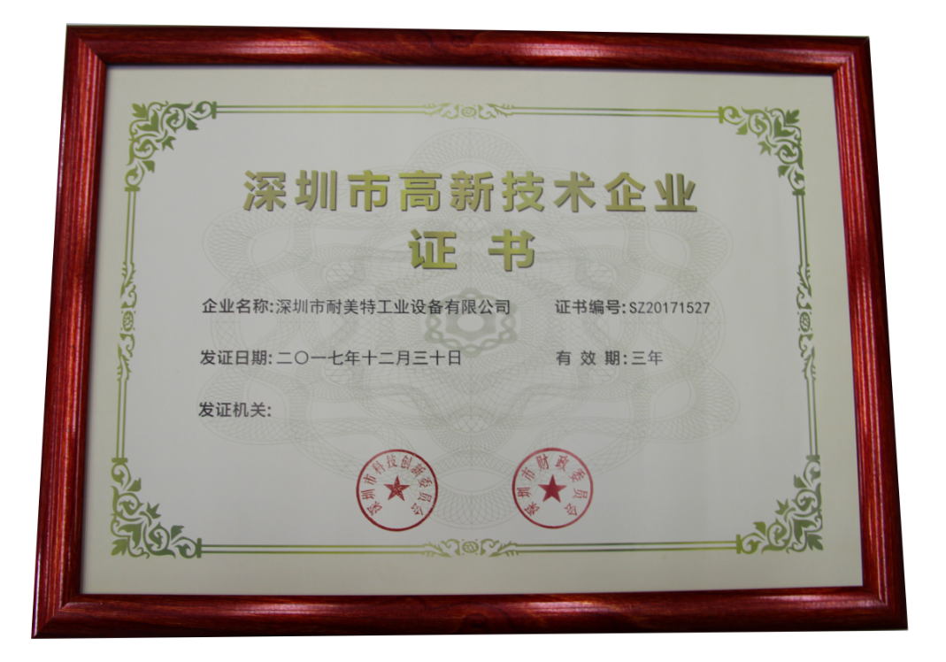 2018年伊始,深圳耐美特工業(yè)設(shè)備有限公司喜迎佳音——根據(jù)國家《高新技術(shù)企業(yè)認(rèn)定管理辦法》和《高新技術(shù)企業(yè)認(rèn)定管理工作指引》的相關(guān)規(guī)定,耐美特工業(yè)設(shè)備被認(rèn)定為國家級(jí)高新技術(shù)企業(yè)。近日,公司也已收到了由深圳市科技創(chuàng)新委員會(huì)、深圳市財(cái)政委員會(huì)、深圳市國家稅務(wù)局、深圳市地方稅務(wù)局聯(lián)合頒發(fā)的“國家高新技術(shù)企業(yè)”認(rèn)定證書,由此正式邁入國家高新技術(shù)企業(yè)行列。
